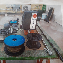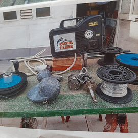 Vendo per non utilizzo perfettamente funzionante affondatore come da foto, con i seguenti accessori.... 2 Palle di cannone da 3 e 5 kg Canna rigida e canna flessibile 4 puleggia raccogli filo varie misure Contametri Staffa per barca per affondatore