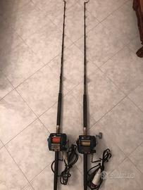 Vendo per inutilizzo n 2 mulinelli elettrici command 6 completi di canne e 1000 metri di treccia whiplash come nuovi usati pochissimo un paio di volte prezzo 850 ciascuno non trattabile.