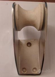 Musone in acciaio inox AISI 316 microfuso e lucidato a specchio con puleggia in nylon. Musone Inox 155 x 62 mm Base mm 90x62 Altezza mm 75 OGGETTO NUOVO MAI USATO - LA PULEGGIA PRESENTA UN PO' DI SPORCO DOVUTO ALLA RIMANENZA IN CANTINA