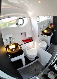 -Allestimento cabina di prua ,con letto matrimoniale, armadio, divanetto e bagno separato con wc elegance con bidet incorporato e doccia