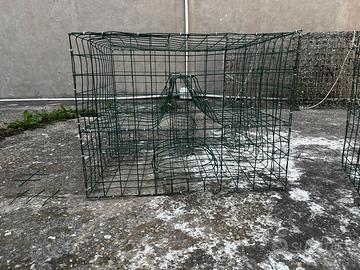 Vendo nasse per granchi con maglia 50x50, con anelli di giunzione in acciaio, POSSO FARNE ANCHE SU ORDINAZIONE E SU VOSTRE SPECIFICHE; ovviamente il prezzo esposto è per una singola nassa, in base al numero di nasse richiesto, tratteremo sul prezzo.