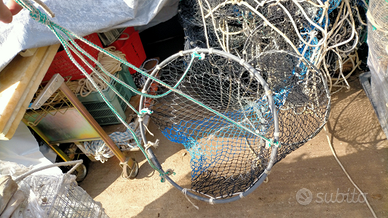 Vendo nasse cogolli da seppie... SONO DA RIPRENDERE PER MANO...alcune già apposto...molte da rivedere l armatura sui cerchi e magari dare qualche maglia... Sono circa 400...vendo solo in blocco a 500 euro.. ritiro a carico dell acquirente a Martellago (Venezia)