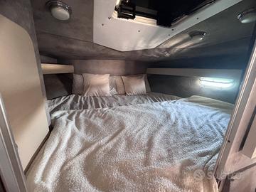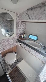 Composta da dinette con divano e tavolo appena refittata,bagno appena cambiato jabsco con a parte motore elettrico x espulsione , due cabine con materasso memory, doppia cucina interna ed esterna con doppio frigo, presa diretta dell'acqua, 2 motori volvo penta da 200cv , prese a mare sostituite a luglio 2025,batterie e carica batteria 2023, impianto audio nuovo, interni nuovi 2024,Telo copribarca totale nuovo .