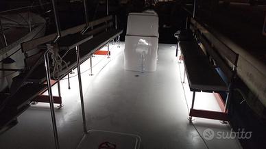 L'intera struttura realizzata in vetroresina con gavoni grandi quanto la lunghezza dell'intero natante accessibile ed interamente ispezionabile con accesso da due passa uomo ad apertura totale, all'interno n.03 pompe di sentina con scarico automatico e manuale.