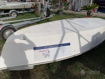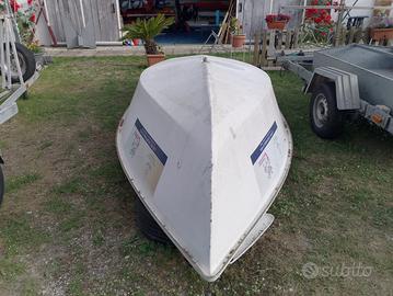 Barca a vela che lunga 4,5 metri circa compreso deriva, albero per vela, la vela non è presente.