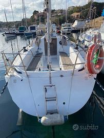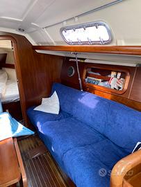 Grand Soleil 34.1 del 2000. LOA 10 m, baglio max 3,27, pescaggio 2 m, motore yanmar 29 hp, 1350 h, elica bipala abbattibike, sartie tondino, attrezzatura Harken, albero Sparcraft, due ordini di crocette, salpaancora con telecomando, cuscineria cabine 2024, spray houd 2023, lazy bag e lazy jack. Randa e fiocco dacron tri radiali 2025. Vela da regata in kevlar in buone condizioni. Spy con tangone, tuff luff, gennaker. Barca ideale per crociera familiare e regate di circolo.