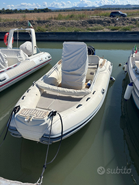 Vendo gommone mt.5.30 con motore mercury 40 hp. Dotazioni Motore ore 35 sempre in garanzia Ecoscandaglio e gps Doccia Dotazioni di sicurezza Plancia di poppa allargata Pagliolato in tek. Tendalino con copertura totale.