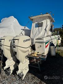 La barca da 7,4 mt prodotta da Cappelli mod Mirage 24 . Dotazioni: Panello solare per accessori, 2 batterie da 100 amper, 2 motori Evinrude 115CV in garanzia fino al 2030, tagliandi annuali regolari, 600 ore circa di navigazione. Luce led estera, luce led interna, luci di posizione e coronamento, pompa sentina automatica, pompa sentina manuale, doccia acqua dolce 50 litri, vasca del vivo inox con pompa aspirazione dal mare, ecoscandaglio Garmin 525 acquistato nel 2024, 10 porta canne interno in tek, 10 porta canne esterno inox, ancora prua con argano elettrico con comando da pozzetto e prua, tromba elettrica di segnalazione, n° 2 ancore a poppa per ancoraggio 10 mt., n° 1 ancora per ancoraggio 100 mt con boa di recupero. Per qualsiasi ulteriore informazione chiamare Bruno al 3356308696