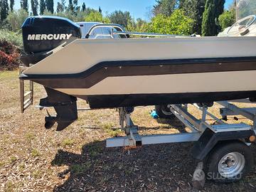 Natante 5 metri completo di tendalino cuscineria radio doccetta carrello gomme nuove motore da rivedere mercury 40 cv four stroke in 4 tempi 3 cilindri.