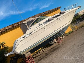 Vendesi Searay sundancer 280 del 1990 due motori mercruiser diesel 160 cv con piedi poppieri Bravo ,gruppo elettrogeno, (diesel Mas 2.6 del 2021), presa impianto 220, bagno wc elettrico con doccia, cucina (induzione 2 fuochi), posti letto 6, camera separata