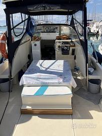 Walkaround totalmente riverniciato e completamente rinnovato in ogni sua parte (impianto elettrico, idraulico, prese a mare, n. 2 serbatoi in polietilene alta densità con capacità combustibile 165 litri, sigma drive, Radio VHF, Radio FM, salpa ancora elettrico, zattera di salvataggio, luci di via e cortesia pozzetto led, faro di profondità sul tetto a poppa led, plafoniere a led in cabina dotazioni di sicurezza entro 12 miglia; frigorifero interno, gabinetto Jabasco marino manuale, prese interne 12v, presa interne 220v, vasca del vivo con pompa acqua di mare, serbatoio acqua dolce con autoclave x doccia, tendalino 2025, n. 6 giubbotti salvataggio da 150 Newton)