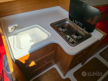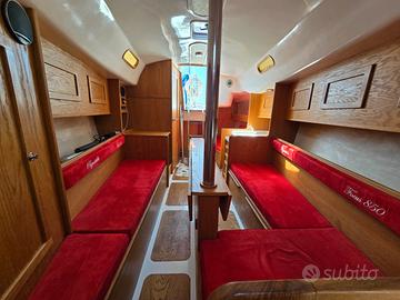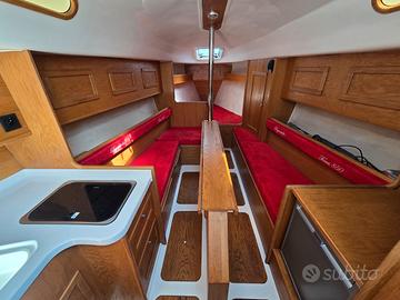 Gli interni sono spaziosi e luminosi, con 6 comode cuccette, bagno con WC marino elettrico e quadrato trasformabile. Tutto il mobilio è in ottimo stato e i paiolati sono impeccabili. La cuscineria interna è perfetta, mentre quella esterna non è presente.