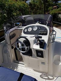 Vendesi Ranieri Shadow 22 WA 2010 iperaccessiorata, verricello elettrico con 50 metri di catena, tendalino in acciaio inox ,copri prua, wc elettrico in cabina, radio, doccia, lavandino,cuscineria rifatta nel 2024 completa di teli di copertura, antivegetativa appena applicata. Motore Honda 225 cv 4T 2018 con sole 250 ore di moto, appena rimessato. Barca in mare al porto di Bari.