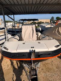 ZAR 47 CLASSIC - Completo di: consolle guida VTR con sedile anteriore timone e corrimano inox, timoneria monocavo, parabrezza, 2 vani interni, sportello, cuscino sedile + schienale consolle; scaletta inox di risalita; 4 bitte e 4 corrimano inox; musone inox salpa ancora; molle a gas per coperchio gavone poppa;