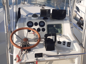 Vendiamo White Shark 225 colore blu anno 2004 con motore Yamaha 200cv 4T del 2022 pochissime ore moto, oltre hond 20cv 4T accensione automatica con nemmeno 100 ore moto. La barca dispone di t.top fishmaster, tendalino a prua in acciaio colore blu , cuscinerie complete, due strumenti GPS ed eco il garmin anno 2024 mai usato ancora in garanzia, doccetta con autoclave, sentina elettrica, due batterie, impianto motore tutto nuovo oltre ad accessori per la pesca come sedia da combattimento ed affondatore kristal fishing con cavo in acciaio. piccolo vano sotto.la guida con vc chimico. Doppia leva di comando per i motori.