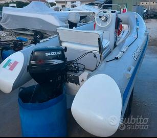 Vendesi gommone Callegari in neoprene di circa 4,5 metri con motore Suzuki 4 tempi df 15 con carrello di alaggio pronto per navigare. Possibilità di avere posto barca pagato fino a fine anno in località Francavilla al mare(Ch) e tenda nautica catarifrangente finestrata con tendalino da pagare a parte ( circa 1000 euro) con altezza ad uomo che permette di utilizzare circa 4 metri di lunghezza per effettuare campeggio nautico.