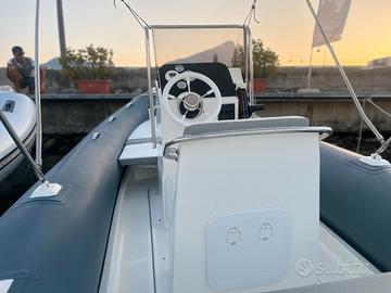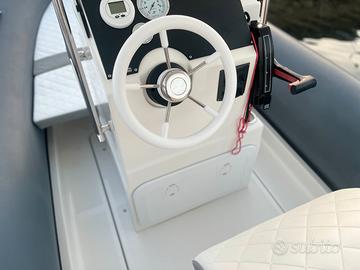 o Coperta autosvuotante o Cuscineria con espanso a cellule chiuse o Gavone ancora e gavone di prua o Gavone di poppa o Gavone i laterale i di prua o Golfari inox o Gonfiatore manuale o Molle a gas per gavone di poppa o Pagaie, mezzo marinaio e kit riparazione o Portelli consolle in plastica o Prendisole e cuscino i di prua, cuscino i di poppa o Prolunga prendisole di prua o Schienale di poppa abbattibile o Sedile anteriore integrato in console o Timoneria meccanica o Consolle con parabrezza, tientibene, volante e gavone