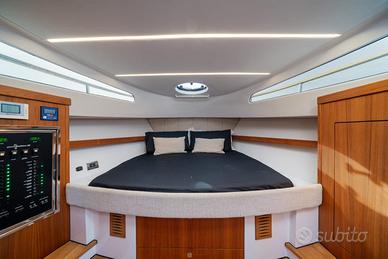 Il gozzo Positano Open 38 è la più spaziosa tra le imbarcazioni Nautica Esposito. Ammiraglia della flotta coniuga grandi spazi interni ed esterni ad una navigabilità eccezionale: un’imbarcazione nata per chi, nel proprio rapporto con il mare, non ammette rinunce. E’ fondato su un sapiente connubio tra innovazione e tradizione: le linee e i materiali replicano lo stile classico del gozzo sorrentino, che tuttavia viene rivisitato negli spazi, più generosi ed innovativi. ANNO 2022 Lunghezza F.T. 11,50 m Lunghezza Scafo 9,99 m Larghezza F.T. 3,85 m Pescaggio 0,80 m Peso a secco 8.000 kg Serbatoi Serbatoio Diesel Inox 2x300 l Serbatoio Acqua 1x180 l Portata Persone 16 Posti Letto 4+2 Motorizzazione Yanmar 2x370 HP (1240 ORE, regolarmente tagliandati) Velocità Max 33 nodi Velocità di Crociera 28 nodi Coperta e pozzetto in Teak, falchette e capodibanda in Teak grezzo, sedile pilota, porta d’ingresso in Teak, prese d’aria sala motori inox, battagliola di prua e di poppa in inox e Teak, parabrezza plexiglass, musone in acciaio, gancio d’accosto, porta bandiere, cuscineria prendisole, impianto distribuzione acqua con autoclave, doccetta sia a poppa che a prua, verricello elettrico, impianto antincendio, mobile cucina con lavello e frigo, divano attrezzato con tavolo regolabile in teak, ampio prendisole di poppa con gavone sottostante, plancetta di poppa in VTR, nome dell’imbarcazione in acciaio inox. Optional aggiunti Pilota Automatico – Generatore – TV – GPS Garmin – Aria Condizionata – Cucina esterna ad Induzione – Inverter ( per cucina ad induzione) – Inverter ( per macchina del caffe’) – Asta doccetta – Prolunga tenda poppa –Ancora Inox 15 Kg + Catena zincata – Elica di Prua – Stereo + n° 04 Casse – Stereo + n° 06 Casse + SUB + DSP – Cappottina con 4 Archi KIT COPERTURE: Copri-cruscotto + copri-tambuccio + copri-prendisole prua + laterali + copri-divano poppa + n°2 oscuranti.