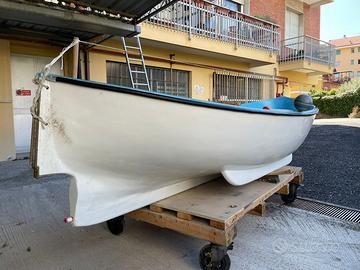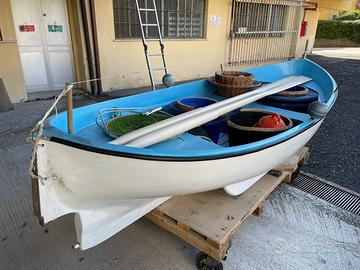 Gozzo in ottima vetroresina in perfette condizioni di mantenimento completo di remi e carrello in foto. Dimensioni 3.6x1.45 metri. Predisposto per motore entro e fuoribordo non inclusi. Attrezzatura da pesca non inclusa
