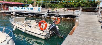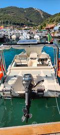 Tipo di barca Salupa Gobbi Family 5.10 Come da foto vendo motoscafo con Motore Envirude 2 tempi 40 hp , motore di emergenza elettrico 650 w, Roll Bar con sopra pannello fotovoltaico ,tendalino, supporti laterali per atolli e fari da illuminazione + luce di navigazione bianco. Plotter Ecoscandaglio Garmin 7''. Dotazioni di bordo entro le 6 miglia. Doccino acqua dolce, pompa di sentina automatica con eventuale interruttore per renderla manuale. Serbatoio interno da 53 litri. Con la barca vendo anche il carrello collaudato novembre 2024 di marca Ellebi da 8 quintali di portata lordi con varricello elettrico 12 V.. Il tutto visibile alle Grazie di Portovenere LaSpezia.