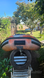 Vendo gommone 3 metri un pochino vecchio ma non ha perdite, naviga benissimo, paiolato in legno, baule porta giubbini, remi, ruote d'alaggio, da pulire bene, è stato sotto gli alberi.