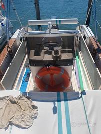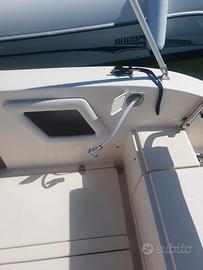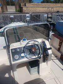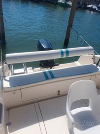 Barca cantiere Eolo modello Samoa lunghezza cm 555 larghezza cm 225 motore 70cv 2t marca Evinrude, ore moto 200 ,accessori musone di prua acciaio inox ancora con catena, tendalino 4 archi impianto stereo, serbatoio acqua dolce con doccetta e indicatore livello , serbatoio benzina litri 55con indicatore livello, bussola,scaletta, luci di via e copri consolle,cuscineria originale come nuova. Possibilità acquisto carrello satellite revisionato ottobre 2025 e motore ausiliario evinrud 4cavalli.