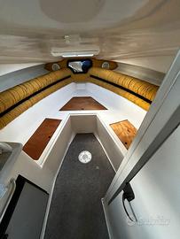 Barca in buone condizioni generali, equipaggiata di frigo, WC elettrico in locale separato, doccia nel pozzetto, cuscini prendisole di prua e di poppa in buono stato, tre batterie (del 2023), presa banchina per caricabatteria , ecoscandaglio più navigatore, impianto TV , impianto audio con autoradio con casse stereo, telo copertura camper totale salpa ancora elettrico con 50 metri di catena. 4 posti letto 2 in cabina e due con la chiusura camper. Tavolino nel pozzetto, , parabordi, salvagenti, 2 ancore etc.etc.