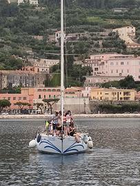 Orca 43 con motore nuovo (betamarine 29 kw), batterie nuove con ripartitore vitron (200 amp linea frigo + 180 amp servizi + 100 amp motore), pilota automatico, contametri digitale catena, salpancore 1000 watt (comandabile wireless, da pozzetto e con telecomando a prua), 75 mt catena da 10, contametri catena digitale, pilota automatico, cartografico esterno raymarine dragonfly, cucina 3 fuochi basculante inox con forno. Numero max di posti letto 11 (3 cabine matrim. + un divano letto in dinette + 1 letto singolo a castello alzando lo schienale del divano + 1 letto matrimoniale abbassando il tavolo + 1 letto singolo a castello alzando lo schienale del divano). Tavolo esterno + cagnaro. Antiscivolo esterno, teak pozzetto. Vela di prua Yankee (praticamente nuovo con calza di protezione e rollafiocco) - Randa steccata al 60% - stralletto per una eventuale trinchetta a garrocci. La barca è dotata di volanti regolabili. 6 winch in pozzetto, 1 winch su base albero. Barca riverniciata 4 anni fà. No osmosi.