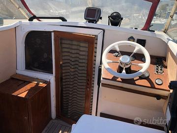 Buone condizioni tagliandata ogni anno, ancora elettrica, si trova al porto di San Foca, in dotazione carrello per trasporto barca, bussola, serbatoio 60 litri, doccetta, cuscineria, scaletta e pedana a poppa in acciaio, ecoscandaglio, tendalino in acciaio inox con copertura telo, stereo, bagno chimico.