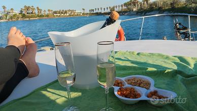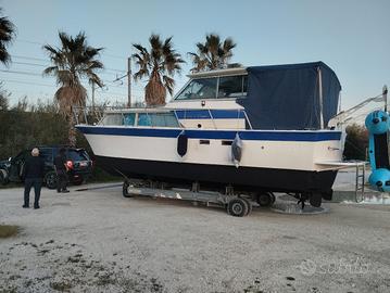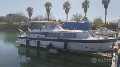 barca molto spaziosa , enorme prendisole, monta due motori Perkins da 230 cavalli ciascuno, in linea d'asse