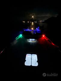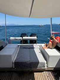 Modificata con motori fuoribordo quindi chiusura specchio di poppa , istallazione di g-Bragheth, monta coppia motori mercury verado da 275cv l'uno anno 2007, quindi la coppia sono 550cv , manetta elettronica con 650 ore moto , più flap