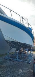Vendesi imbarcazione 7 mari 10,20, fuori tutto 11,30mt, due cabine+dinette, bagno con doccia separata, due motori aifo 330 cv, sbarcati e rifatti completamente, aria condizionata ca/fre in tutti gli ambienti, interni in legno. carena V profonda ideale per crociere e pesca. carena portata a zero trattata con resina epossidica. eliche nuove 4 pale. 25 nodi di crociera 31 di massima. Altri piccoli lavori da fare.