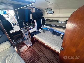 1980, Barca da 12 posti, ampio pozzetto, con enorme prendisole di poppa, plancia di poppa allungata, hard top, interno disposto con cucina, bagno, cabina armatoriale separata, dinette con 4 posti letto, cucina con fuochi nuovi, vhf, stereo bluetooth, prese usb interne ed esterne,frigo, ghiacciaia esterna ,bagno separato wc elettrico, stereo, tv 12 v,eco lowrance, luci led pozzetto, interne e subacquee, 3 pompe sentina, verricello con 60 mt di catena, Serbatoio acqua 300Lt, boiler 25lt , serbatoio Gasolio 800 lt prese mare e valvole perfette, cuscineria in perfetto stato anno 2021, 2 motori volvo Tamd 70D linea d'asse con V-drive, 270 cv cadauno, autoclave 24 V, 4 batterie da 180 ah anno 2025, prese mare e valvole perfette, serbatoi puliti e impianto gasolio completamente nuovo, racor nuovi, tubazioni gasolio nuove, raiser inox nuovi, alternatori nuovi anno 2022, manutenzioni motori fatte ad agosto 2025 ( motori sbarcati a Marzo per revisioni pompe gasolio , iniettori, scambiatori di calore e guarnizioni e manicotti , astucci e boccole