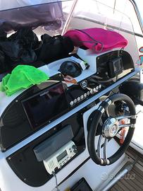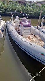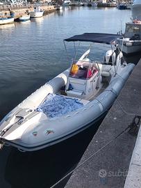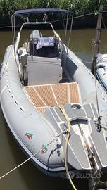 Gommone Sacs 780 anno 2006 motore Evinrude 300cv in garanzia fino al 2028 tutti tagliandi eseguiti sostituito cavalletto e motorino idroguida maggio 2025 circa 500 ore perfetto full optional frigo tre batterie di qui due 200ha gps simrad doppia pompa sentina stereo fusion vhf doccia spiaggiette poppa doppio tendalino fino a prua tavolo salpa ancora elettrico manetta elettronica tappezzeria completa ma da rivedere telecomando salpa ancora, cavo presa banchina luci su rollbar
