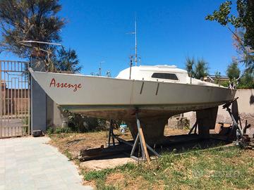 Causa inutilizzo vendo barca a vela in compensato marino Mt 7 completa di vele e motore 6 Hp 4 tempi.