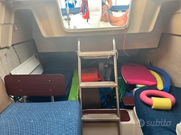 All'interno il MacGregor 26 presenta un locale "open space" (1,85 m di altezza) con sei posti a sedere nel quadrato e una doppia cuccetta a prua, wc chimico separato e tavolo (amovibile), è ancora una buona scelta per navigazioni di piccolo cabotaggio lungo costa.