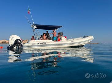 Vendo gommone Sacs dream 25 versione elegante gommone in ottime condizioni tubolari come nuovi teack interno.. gommone 8,50 fuori tutto il gommone è pieno di optional 2 porta canne in acciaio dal valore di 600 euro 4 porta canne da riposo radio marina con 4 casse heartz montata l anno scorso 1400,00 euro salpa ancora elettrico gestibili sia da consolle che da prua.. 2 doccia con autoclave una interna e una su spiaggetta di poppa ampi gavoni frigo nuovo anno 2023 mai usato 1000 euro tavolino a poppa più sedile e prendisole cuscineria in ottimo stato. motori Mercury verado 250 cv del 2016 con 380 ore come nuovo impeccabile e Mercury 9.9 cv gestibile tutto da consolle dream accensione e manetta anno 2024 ancora in garanzia fino a 2028.. tendalino estraibile con allungamento fino a prua. Gommone che naviga benissimo per chi conosce il cantiere anche con mare molto formato velocità 42 nodi con 8/10 persone vendo per cambio progetto a malincuore. Gommone adatto per uscite in famiglia e ben attrezzato per la pesca possibile prova in acqua fino al 30 ottobre posto pagato fino a maggio 2026 a Marzamemi No proposte assurde accetto permute con moto d acqua o gommone o barca di mio gradimento..