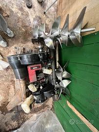 Sono completi di pistoni per timoneria e trim con relativi motorini. Assieme c'è il motorino TAYBAR per convergenza e divergenza. Scambiatori di calore per motori di raffreddamento a circuito chiuso. Nel pacchetto sono comprese 4 coppie di eliche da superficie, 2 per benzina e 2 per diesel. Sono compresi telecomandi per acceleratore e marce completi di leve, flap completi di motorini trim. Erano montati su catamarano da gara SIREG di Marco Capoferri, costruita nel 90 in alluminio con tutta l'attrezzatura messa nuova e montava 2 motori Sitek Diesel da 1200 CV. L' imbarcazione ha corso nel campionato mondiale del 1991. Marco Capoferri è venuto a mancare nel 92 e lo scafo è stato fermo fino al 97. Il figlio di Capoferri ha provato a rimetterla in acqua con 2 motori a benzina Lamborghini ma il catamarano non planava perché era nato per i diesel , ì benzina pesavano 1000 kg in meno. Impossibilitato a partecipare alle gare la dismessa. Nel 1999 io ho comprato il catamarano compreso il camion per trasportarla per 80 milioni di lire . Con la mia esperienza modificando il tunnel dall inizio di prua fino ai sedili dei piloti ho creato una portanza che mi alzava le prue. Nel 2001 mi sono inscritto al mondiale con motori Lamborghini da 1200 Cv, limitati a 7 mila giri, per via dei costi.