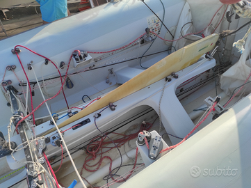 Nautivela 470 ITA 4202 barca a vela progettata per offrire prestazioni eccellenti sia in allenamento che in regata. Questo modello è dotato di un doppio trapezio per sfruttare al massimo la velocità e la stabilità della barca. Armata con attrezzature di alta qualità delle marche Harken e Ullman. Viene fornita con due set di vele. Albero in alluminio rastremato. Trasto randa disponibile sia in tessile (su carrelli Harken) che con archetto rigido in alluminio. Tangone, 2 spinnaker.