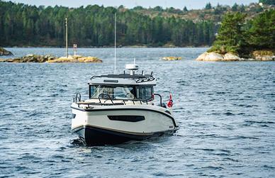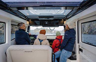 Cicar nautica concessionario Nuova Jolly, Quicksilver Boats, Mercury Marine, distributore Beneteau per il Lazio propone: NAVAN C30 Il modello NAVAN C30 abbina eleganza sportiva con funzionalità di lusso e tecnologie innovative sotto ogni punto di vista, per gli spiriti più avventurosi. In grado di trasportare 12 passeggeri e progettato tenendo conto di sicurezza, comfort, stile e potenza, questo modello è comodo sia nei tuoi laghi preferiti, sia per la navigazione costiera. Scegli tra le configurazioni a motore singolo o doppio fino a 600 CV: niente può fermarlo. CARATTERISTICHE - Scafo a doppio step - Tecnologie all'avanguardia - Esclusivo sistema di condizionamento 12v con banco batterie dedicato per uso indipendente dall'alimentazione dalla banchina - Sistema di inverter a batterie per l'uso del grill elettrico indipendente dall'alimentazione dalla banchina - Controllo a distanza della batteria - Plancia ergonomica con cruscotto digitale con capacità per doppio schermo a filo da 12 pollici - L'imbarcazione è dotata di un equipaggiamento standard di prim'ordine - Tappezzeria premium - Area per la preparazione pietanze completamente equipaggiata - Cabina di prua confortevole - Sicurezza a bordo - Ampio prendisole di prua - Design della chiglia aggressivo (straight/reversed) SPECIFICHE C30 Lunghezza fuoritutto - 10,23 m Lunghezza della Carena - 8,99 m Larghezza massima - 2,99 m Altezza dal piano di calpestio - 1,80 m Peso vuoto dell'imbarcazione escluso il motore - 3888 kg Lunghezza gambale - 1-XXL/2-XL Potenza massima - 600 hp (441 kw) Accesso all'acqua - 0,63 m Serbatoio acqua - 80 L Capacità massima serbatoio - 400 L Modello serbatoio carburante - Integrato Altezza della barca - 2,30 m Categoria CE/Portata massima persone - B/10 - C/12 Numero posti letto - 3 Vieni a trovarci presso la nostra sede o contattaci telefonicamente per un preventivo personalizzato!