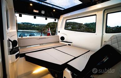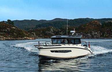 Cicar nautica concessionario Nuova Jolly, Quicksilver Boats, Mercury Marine, distributore Beneteau per il Lazio propone: NAVAN C30 Il modello NAVAN C30 abbina eleganza sportiva con funzionalità di lusso e tecnologie innovative sotto ogni punto di vista, per gli spiriti più avventurosi. In grado di trasportare 12 passeggeri e progettato tenendo conto di sicurezza, comfort, stile e potenza, questo modello è comodo sia nei tuoi laghi preferiti, sia per la navigazione costiera. Scegli tra le configurazioni a motore singolo o doppio fino a 600 CV: niente può fermarlo. CARATTERISTICHE - Scafo a doppio step - Tecnologie all'avanguardia - Esclusivo sistema di condizionamento 12v con banco batterie dedicato per uso indipendente dall'alimentazione dalla banchina - Sistema di inverter a batterie per l'uso del grill elettrico indipendente dall'alimentazione dalla banchina - Controllo a distanza della batteria - Plancia ergonomica con cruscotto digitale con capacità per doppio schermo a filo da 12 pollici - L'imbarcazione è dotata di un equipaggiamento standard di prim'ordine - Tappezzeria premium - Area per la preparazione pietanze completamente equipaggiata - Cabina di prua confortevole - Sicurezza a bordo - Ampio prendisole di prua - Design della chiglia aggressivo (straight/reversed) SPECIFICHE C30 Lunghezza fuoritutto - 10,23 m Lunghezza della Carena - 8,99 m Larghezza massima - 2,99 m Altezza dal piano di calpestio - 1,80 m Peso vuoto dell'imbarcazione escluso il motore - 3888 kg Lunghezza gambale - 1-XXL/2-XL Potenza massima - 600 hp (441 kw) Accesso all'acqua - 0,63 m Serbatoio acqua - 80 L Capacità massima serbatoio - 400 L Modello serbatoio carburante - Integrato Altezza della barca - 2,30 m Categoria CE/Portata massima persone - B/10 - C/12 Numero posti letto - 3 Vieni a trovarci presso la nostra sede o contattaci telefonicamente per un preventivo personalizzato!