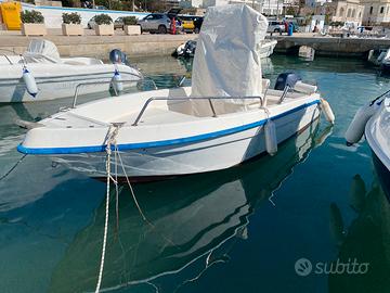 Vendesi New Murena 550, barca open spaziosa e sicura, ideale per uscite giornaliere in famiglia o battute di pesca. Motorizzata con Yamaha 80CV 4 Tempi (2010), motore sinonimo di affidabilità, silenziosità e consumi ridottissimi.