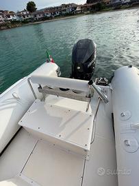 Novamarine RH 700 unico proprietario, utilizzato solo un mese l'anno e poi sempre rimessato al coperto, motorizzato con un mercury 200 hp v6 del 2023 con all'attivo 80 ore di moto ancora in garanzia, sempre tagliandato da officina mercury. Carena e tubolari privi di antivegetativa, carena ancora con il gelcoat originale. Il gommone è completo di tutti i certificati del cantiere costruttore Dotato di: verricello elettrico con ancora inox bruce e 30 m di catena da 8mm tendalino sole originale nuovo cuscineria completa originale nuova 2 scalette originali una di poppa e una laterale esterna rigida in acciaio inox tre gradini bussola a vetro originale impianto doccia acqua dolce originale eco - chart plotter "Dragon fly" 5 Raymarine con trasduttore a poppa pompa di sentina automatica e ad azionamento manuale rack portabombole su sedile posteriore 3 bombole da 15lt Motore: Mercury F200 XL DS V6 active trim Vessel View Mobile (interfaccia) elica acciaio 80 ore di moto certificabili garanzia Mercury marine 5 anni telecomando a chiesuola DTS strumenti multifunzione system tach speed SC 1000 Visibile in cantiere previo appuntamento Commissioni di agenzia pari al 5% da aggiungere al prezzo di vendita