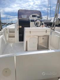Natante varato nel 2020,Tendalino "roll bar"in acciaio copre da prua a poppa,ampio pozzetto,frigo 12v/220v ,ancora 7,5kg con 100 m di catena ,doppio strumento ecoscandaglio con sonda ,navigatore,vhf,radio Fusion,cuscineria completa ,velocità max 45 nodi ,3 posti letto,cucina fornello 1 gas ,lavandino,bagno ,doccia 100 l Suzuki DF 200A ore 180 ,manetta elettronica chiave keyless,consumi molto bassi tagliandi ufficiali suzuki per prove Porto Argonauti Pisticci MT no sognatori/affaristi Marinello,Idea marine,sessa,ranieri honda,yamaha,mercury