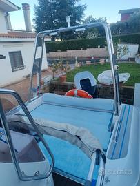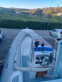 Vendesi gommone nuova jolly king 600 in ottime condizioni -impianto elettrico rifatto questa estate -whf con antenna -radio/ bluetooth con due casse marine -pulsantiera per tutti gli accessori/ luci luci di via, luce centrale e luci supplementari a led pompa di sentina, pompa per la doccetta con serbatoio da 30 LT -roll bar in acciaio inox - serbatoio benzina in acciaio inox da 170 litri con galleggiante nuovo -cuscineria completa, ampio prendisole a prua con una tavola non presente in foto, e ampio prendisole a poppa -MOTORE YAMAHA HPDI VMAX 150 CV 2 tempi con circa 400 ore di navigazione, consumi 55 LT/h fa tranquillamente i 40 nodi -CARRELLO satellite da 1500kg, con argano elettrico e cassetta porta attrezzi per riporre la batteria e le cinte, gomme nuove messe lo scorso anno, REVISIONATO