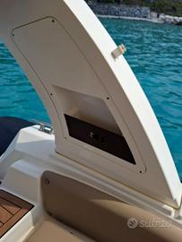 GPS ed ecoscandaglio Raymarine, autopilota Raymarine, bussola, Roll bar in VTR con ampio tendalino di poppa, divano di poppa estensibile ad ampio prendisole matrimoniale, tavolino di poppa removibile, ampio prendisole di prua ampliabile ulteriormente, batterie con stacca batterie, bagno elettrico, serbatoio di acque nere, ancora in acciao, salpa ancora elettrico, doccia acqua dolce, stereo con usb e quattro altoparlanti, frigorifero, lavandino, serbatoio carburante 300 lt, serbatoio acque bianche 60 lt, plancette di poppa, doccino di poppa, dotazioni di sicurezza complete.