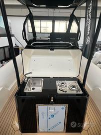 Ogni dettaglio è stato attentamente studiato per garantire sicurezza, praticità e stile, dalle plancette di poppa bimotore e il frigorifero, alla dinette con tavolo e il WC marino separato.