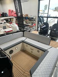 Cicar Nautica concessionario Beneteau, Quicksilver Boats, Mercury Marine, Navan, distributore Nuova Jolly per il Lazio propone: Nuova Jolly Prince 33 CC Center Consolle Sportivo ma con una cabina che può ospitare due persone con bagno separato. Scoprite l'eleganza e la versatilità del Prince 33 CC, un'imbarcazione di 10,40 metri progettata per offrire un'esperienza di navigazione senza precedenti. Con una notevole capacità di trasporto e una potenza applicabile di 700 HP, il Prince 33 CC combina prestazioni eccezionali e comfort di lusso. Ogni dettaglio è stato attentamente studiato per garantire sicurezza, praticità e stile, dalle plancette di poppa bimotore e il frigorifero, alla dinette con tavolo e il WC marino separato. Gli optional disponibili permettono di personalizzare l'imbarcazione secondo le vostre esigenze, rendendo ogni uscita in mare un'esperienza unica e indimenticabile. Ideale per chi desidera vivere il mare con stile, il Prince 33 CC con la sua configurazione versatile è adatto tanto a momenti di svago e velocità con famiglia e gli amici, quanto a serate eleganti in rada, offrendo un equilibrio perfetto tra avventura e raffinatezza. SPECIFICHE TECNICHE Lunghezza fuori tutto | 10.40 m Lunghezza di certificazione | 9.64 m Larghezza | 3.42 m Lunghezza interna | 8.70 m Larghezza interna | 2.10 m Diametro tubolare | 60/44 cm Peso a secco | 2.300 kg Categoria* | B Numero compartimenti | 6 Cabine | 1 Portata persone* | 12 Performance Potenza massima applicabile* | 700 HP Altezza specchio di poppa | 2 XXL Serbatoi Serbatoio acqua dolce | 90 L Serbatoio acque nere | 30 L Serbatoio carburante | 525 L Contattaci per un preventivo personalizzato!