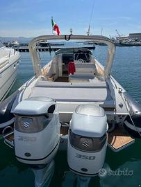 Il gommone si presenta in ottime condizioni con motori Suzuky 350 dual prop Giugno 2022 (225 ore di navigazione), elica di prua (motorino cambiato settembre 2024), tappezzeria nuova rifatta Aprile 2023, tendalino Aprile 2023 blu navi, simil teak rifatto Marzo 2023, ancora maggiorata da 13 kg cambiata ad Aprile 2024