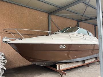 Privato vende natante cabinato SESSA Oyster 25 EFB con 1 Volvo Penta 8V 5.0GXi ben tenuta, non restaurata ma in buone condizioni. Tagliandata regolarmente, curata amorevolmente. Barca onesta a prezzo onesto. Nessun AFFARONE, astenersi perditempo. Ben accessoriata: verricello elettrico, correttori d'assetto, linea banchina 220V, ecoscandaglio fishfinder, bussola, stereo, microonde, fornello a gas, lavello, frigorifero. WC marino elettrico, boiler, capottina e telone copriscafo. 4 posti letto, cuscinerie prendisole anche in prua. Misure: 7,50 x 2,55 pescaggio 0,7 mt; peso: ~2.300 kg Visibile SOLO previo appuntamento, la barca NON è attualmente in acqua.